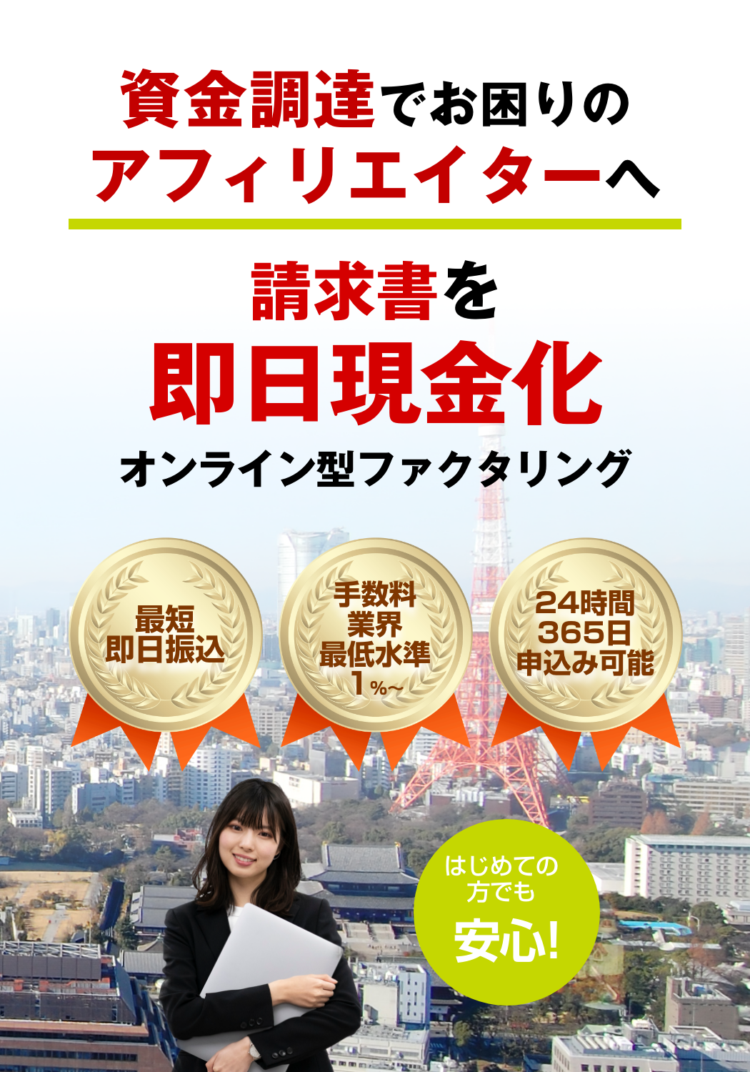 資金調達について、少しでもお考えのアフィリエイターの方はお気軽にお問合せください。